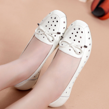 新款夏季真皮女鞋平底女凉鞋休闲镂空妈妈鞋平跟鱼嘴鞋大码鞋