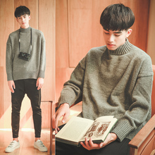 侑模原创包邮秋冬新品半高领宽松落肩蝙蝠袖男士纯色毛衣线衣外套