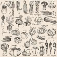 A0143矢量手绘复古蔬菜植物线稿图 AI设计素材