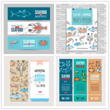 A2276矢量卡通海鲜菜单海报传单优惠券模板龙虾螃蟹 AI设计素材