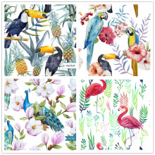 A0084矢量唯美水彩动物热带鹦鹉火烈鸟孔雀连续图案 AI设计素材