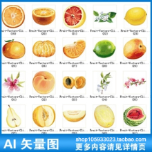 手绘水果模板矢量AI设计素材葡萄苹果菠萝橙子柠檬桃子A429