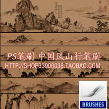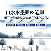PS笔刷素材 古典水墨元素山脉 山水画树笔触画笔笔刷中国风素材