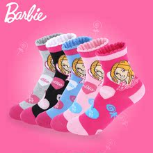 芭比儿童棉袜冬季小学生宝宝厚款袜子女童5双盒装家居公主地板袜
