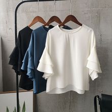 【时间旅途】2017春夏新款 高品质荷叶边袖衬衣七分袖上衣 653