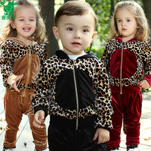 皮皮牛童装 春款童装男女童卡通豹纹运动套装 儿童春装套装