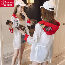 2017夏季新款防晒服女韩版宽松印花轻薄透气外套连帽中长款防晒衣