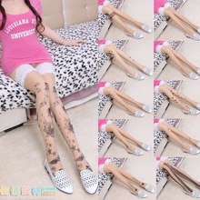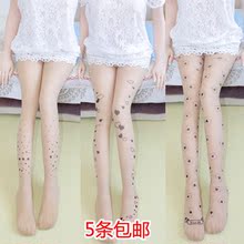 夏季薄日系打底袜子开档免脱性感可爱纹身丝袜连裤袜印花袜子