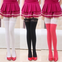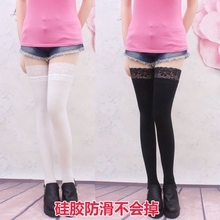 春秋中厚女蕾丝花边硅胶防滑高筒袜袜长筒袜天鹅绒丝袜女袜不透