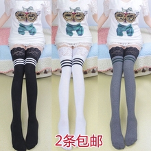 春秋棉甜美撗扛麻花硅胶防滑高长筒袜女袜子蕾丝边美腿袜2条包邮