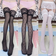 性感超薄硅胶防滑网长筒袜蕾丝花边提花高筒袜大腿袜丝袜女袜子