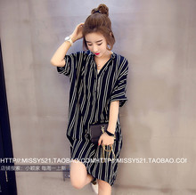 孕妇装夏装上衣韩版加大码200斤中长款五分袖孕妇衬衫连衣裙夏季