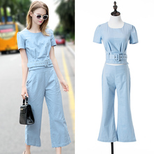 时尚套装2017夏装小香风两件套气质显瘦棉麻时尚九分阔腿裤套装潮
