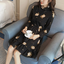 2017春装新款 韩版长袖立领修身气质小碎花加厚雪纺连衣裙