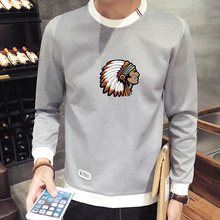 2017春装新款男卫衣 时尚休闲韩版印花圆领套头卫衣男长袖针织衫