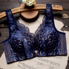 内衣 女无钢圈 深v性感蕾丝调整型聚拢小胸罩厚杯 大码文胸薄款夏