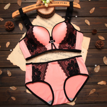 深V性感蕾丝聚拢调整型小胸厚杯胸罩套装 内衣女聚拢 无钢圈文胸