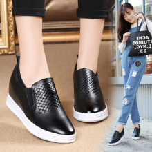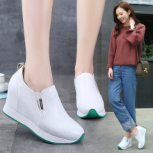 2017春夏新款内增高单鞋运动休闲镂空小白鞋一脚蹬乐福鞋真皮女鞋