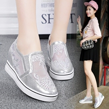 春夏新款运动鞋女网纱休闲鞋女透气网鞋坡跟乐福鞋单鞋内增高女鞋