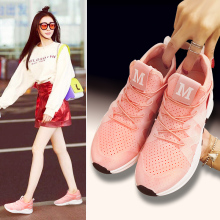 内增高运动鞋女春季新款2017韩版学生跑步鞋 透气网面单鞋旅游鞋