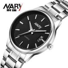 包邮简约商务正品耐瑞手表男士夜光日历精钢带非机械石英电子腕表