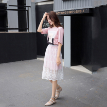 衣可诺夏季短袖纯棉T恤连衣裙蕾丝裙中长两件套时尚套装韩版显瘦