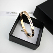 镀18k彩金饰品女款玫瑰金手镯手饰日韩罗马数字钛钢手镯子配饰