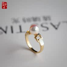 珍珠戒指 18k金天然日本海水akoya珍珠简约女款极强光正圆新品