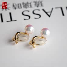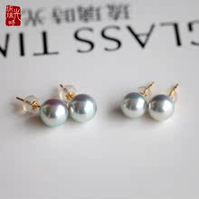 Glass Time/琉璃时光akoya珍珠耳环7.5-8mm正圆极强光花珠耳线18K