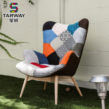 星威单人沙发椅欧式阳台卧室客厅布艺沙发椅百家布休闲椅实木脚架