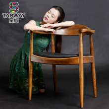 星威美式餐椅实木椅子肯尼迪总统椅北欧餐厅椅真皮圈椅电脑椅座椅