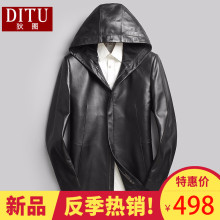 狄图海宁真皮皮衣男士绵羊皮中长款修身连帽中年皮风衣薄款外套男
