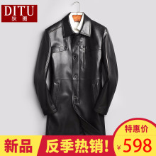 海宁春秋新款绵羊皮真皮皮衣男 中长款翻领修身风衣男装 中年外套