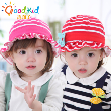 乖孩子春季儿童帽子男女宝宝帽子盆帽荷叶花边渔夫帽1-3宝宝盆帽
