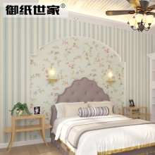 御纸世家 田园小花壁纸 AB版竖条纹满铺客厅卧室温馨无纺布墙纸