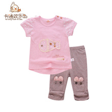 儿童短袖套装女2017新款婴儿夏装T恤短裤1-3岁潮女宝宝童装7分裤