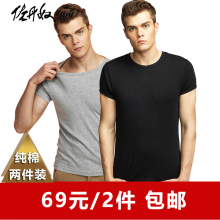 佐丹奴男装T恤 短袖圆领纯棉修身男装上衣两件装打底衫男01242011