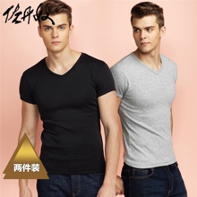 佐丹奴打底衫 男士T恤男装两件装V领纯棉短袖T恤01242013