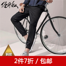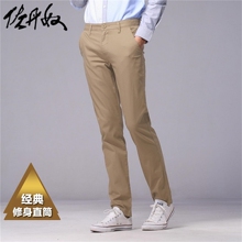 佐丹奴时尚休闲裤男修身窄脚弹力棉直筒青年卡其长裤夏季13115504