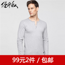 佐丹奴T恤 男装全棉纯色磨毛享利领打底衣 男士长袖t恤衫01024605