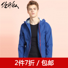 佐丹奴外套男装简约素色魔术贴连帽风衣01076005