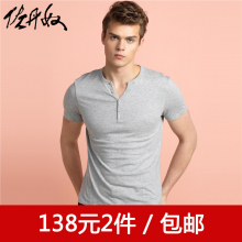 佐丹奴T恤男士夏季简约休闲修身纯色纯棉亨利领短袖T恤衫01026216