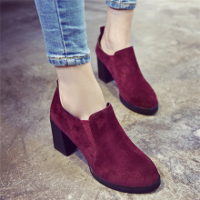 2016秋季高跟女鞋单鞋粗跟厚底防水台圆头绒面深口低帮鞋单靴女靴