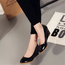 2017秋平底坡跟尖头低跟黑色工作鞋女通勤职业皮鞋浅口上班女单鞋