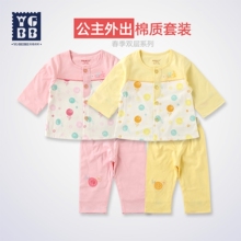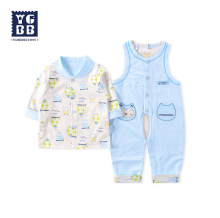 英格贝贝2017新款0-1岁男宝宝春装薄款双层纯棉套装婴儿外出衣服