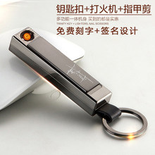 高档USB充电钨丝打火机刻字钥匙扣超薄防风个性男士创意送男友