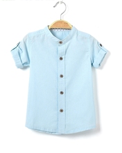 男童衬衫白色长袖上衣薄款儿童棉麻衬衣小学生中大童立领亚麻夏季
