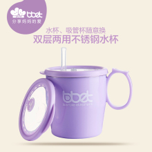 bbet巴比象儿童不锈钢水杯带盖 大容量宝宝吸管杯单层304不锈钢