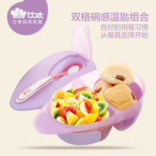 bbet巴比象儿童餐具套装宝宝吃饭碗创意分格碗婴儿感温汤勺碗套装