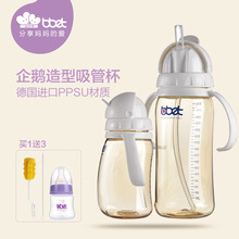 bbet巴比象宝宝喝水杯子企鹅PPSU吸管杯婴儿学饮杯防漏带吸管夏季